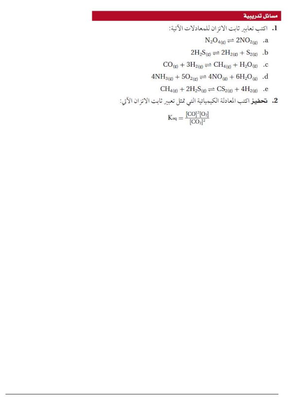 اكتب تعبير ثابت الاتزان للمعادلات الاتيه