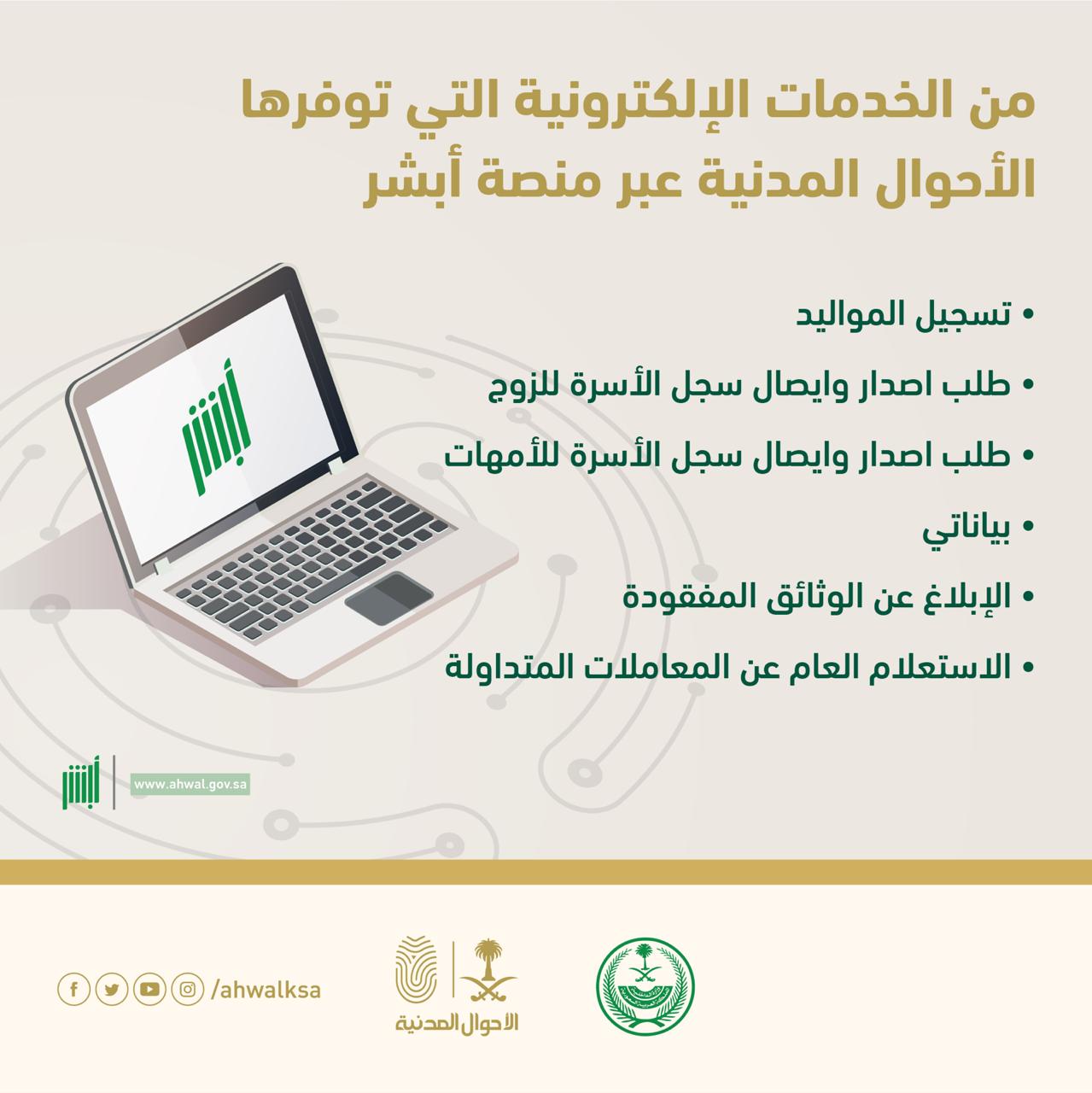 الاحوال المدنية خدمة العملاء قامت وزارة الداخلية بالمملكة العربية السعودية بتوفير وسائل اتصال خاصة بمراكز الأحوال المدنية وذلك عن طريق أرقام هاتف موحدة أو عن طريق تطبيق أبشر والذي قامت الوزارة بإصداره حيث أن هذا التطبيق قد سهل على المواطنين الك. خدمة مكتب تنسيق القبول بالمدن الجامعية. Absher sa email protected الأحوال المدنية خدمة العملاء الاحوال المدنية السعودية حجز موعد السجل المدني أبشر حجز موعد الأحوال المدنية للمقيمين حجز موعد الأحوال عبر أبشر حجز موعد الاحوال المدنية السعودية. يجب أن تكون الزوجة مضافة في سجل الأسرة أو صورة من صك الطلاق إذا كانت العلاقة الزوجية منقطعة.